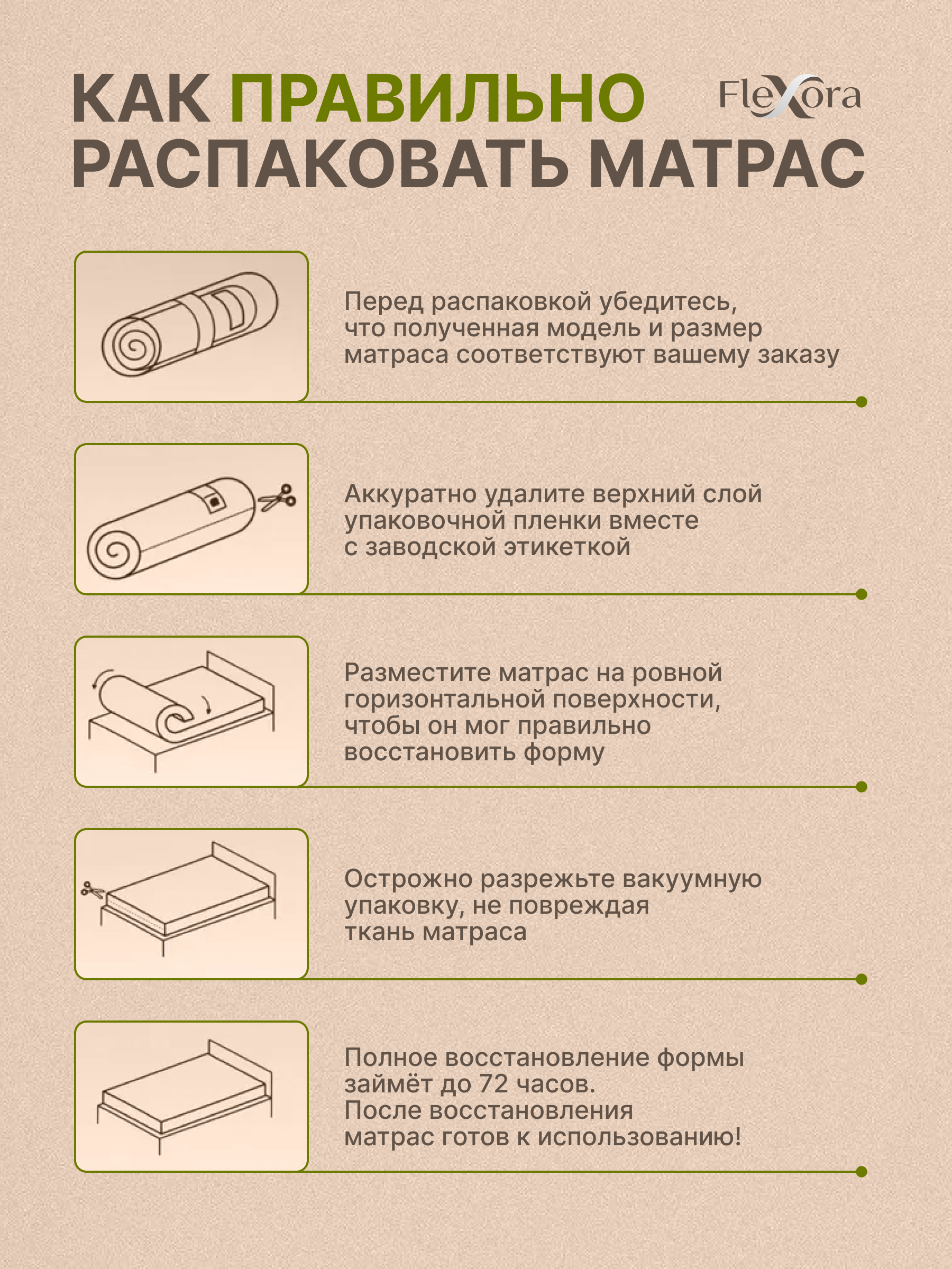 Бренд Flexora в первую очередь нацелен на Ваши пожелания. Наши матрасы отлично встраиваются в любой интерьер, подходят взрослым и детям. Благодаря ряду технологических решений, матрасы Flexora обладают сниженной передачей движения, что позволяет спать на матрасах парам, в том числе с большой разницей в весе, не боясь потревожить сон партнёра.