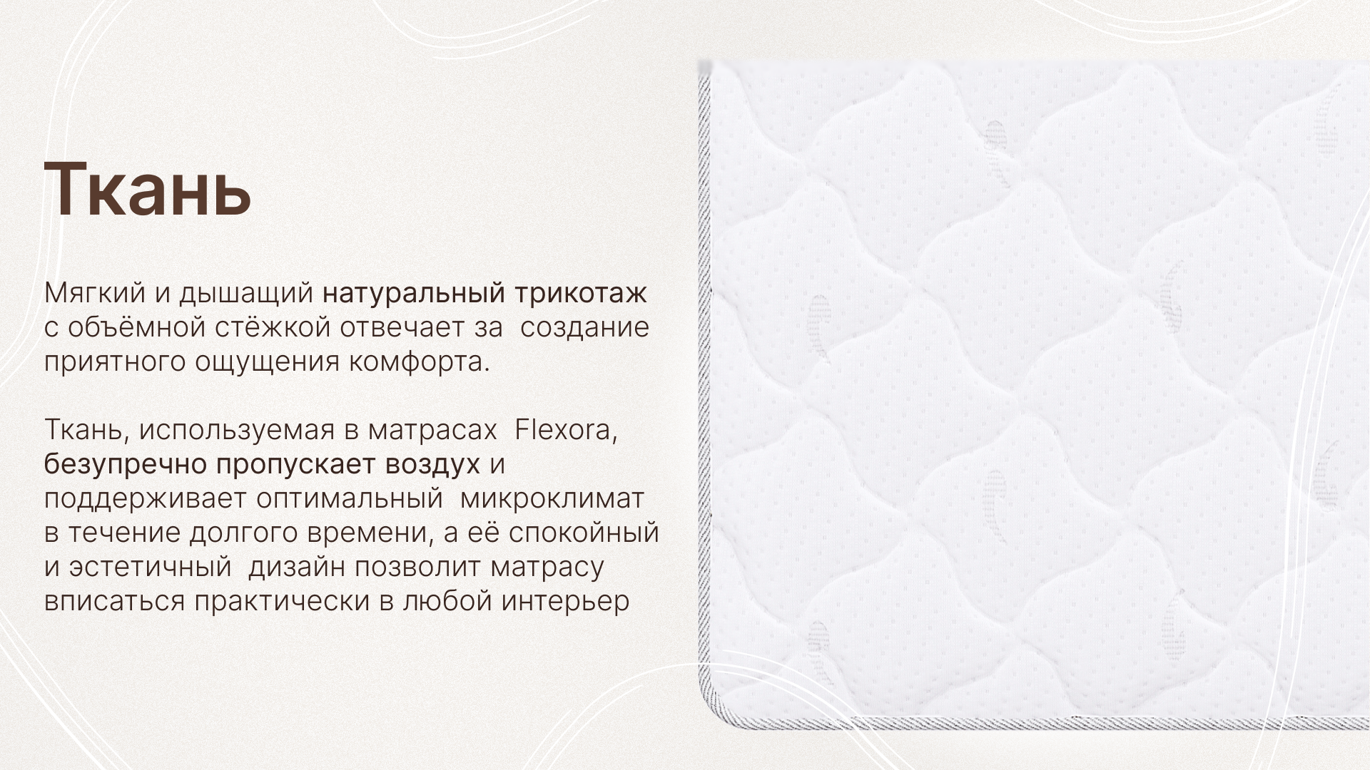 Бренд Flexora в первую очередь нацелен на Ваши пожелания. Наши матрасы отлично встраиваются в любой интерьер, подходят взрослым и детям. Благодаря ряду технологических решений, матрасы Flexora обладают сниженной передачей движения, что позволяет спать на матрасах парам, в том числе с большой разницей в весе, не боясь потревожить сон партнёра.