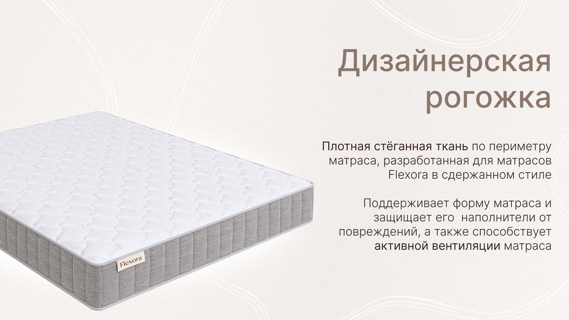 Бренд Flexora в первую очередь нацелен на Ваши пожелания. Наши матрасы отлично встраиваются в любой интерьер, подходят взрослым и детям. Благодаря ряду технологических решений, матрасы Flexora обладают сниженной передачей движения, что позволяет спать на матрасах парам, в том числе с большой разницей в весе, не боясь потревожить сон партнёра.